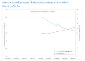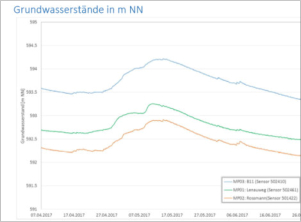 Grundwassserpegel Karl-Lederer-PlatzDaten zu den Grundwasserpegeln:Datensammler: Firma DHI WASY GmbHAktiv seit: 04.2017Orte: Lenauweg, Hermann-Löns-Weg, B11, GraslitzerstraßeGeländeoberkante: verschieden ü. NNGrundwassermessdatenIm Rahmen des Grundwasser-Beweissicherungs-programms der Stadt Geretsried, möchte ich Ihnen zur allgemeinen Information die aktuellen Grundwasser-messdaten zusenden. Aktuell (Stand 28.6.2017) sind die Grundwasserstände aufgrund der geringen Niederschläge sehr niedrig.Dr.-Ing. Patrick Keilholz, Büroleiter München, Senior Consultant, DHI WASY GmbHGrundwasserständeZeitraumMonate _______________________________________________________________________________________April - Juni 2017Juli 2017 - Dezember 2017 noch ausstehendJanuar 2018 - Juni 2018 noch ausstehend