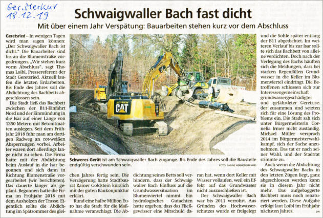 Presse 2019> Bebauung Lorenz-Areal: Darum kritisiert Interessengemeinschaft die Bauer GroupMünchner Merkur Online vom 26.04.2019------------------------------------------------------------------------------------------------------------------------------------------------------> Wasserstandsmeldung aus dem StadtzentrumMünchner Merkur Online vom 26.04.2019------------------------------------------------------------------------------------------------------------------------------------------------------> Das ist schon ein TraumInterview mit Architekt und Stadtplaner Klaus KehrbaumMünchner Merkur vom 22.6.2019------------------------------------------------------------------------------------------------------------------------------------------------------> Alles im FlussMünchner Merkur vom 16.1.2019------------------------------------------------------------------------------------------------------------------------------------------------------> Ein Ende ist in SichtMünchner Merkur vom 8.11.2019----------------------------------------------------------------------------------------------------------------------------------------------------> Schwaigwaller Bach fast dichtMünchner Merkur vom 18.12.2019