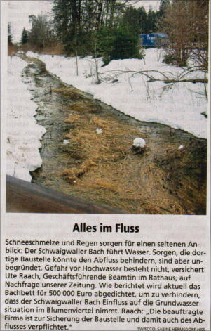 Presse 2018> Überflutete Keller: Bach hat EinflussMünchner Merkur vom 26.01.2017------------------------------------------------------------------------------------------------------------------------------------------------------> Die unsichtbare HochwassergefahrMünchner Merkur vom 26.01.2017------------------------------------------------------------------------------------------------------------------------------------------------------> Schwaigwaller Bach könnte für großen Aufschrei sorgenMünchner Merkur Online vom 14.03.2018------------------------------------------------------------------------------------------------------------------------------------------------------> Ein Boden für den BachSüddeutsche Zeitung Online vom 14.03.2018------------------------------------------------------------------------------------------------------------------------------------------------------> Die Grundwassergeschädigten sagen DankeSüddeutsche Zeitung Online vom 18.04.2018------------------------------------------------------------------------------------------------------------------------------------------------------> Einer von vielen wichtigen SchrittenMünchner Merkur Online vom 19.04.2018